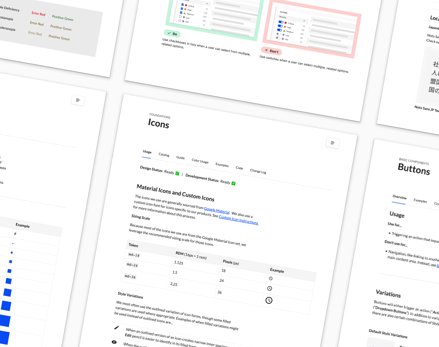 In preparation for migration of documentation and guidelines into Zeroheight, I spearheaded the initiative by planning and defining the information architecture and evaluating content organization and tool integration.
